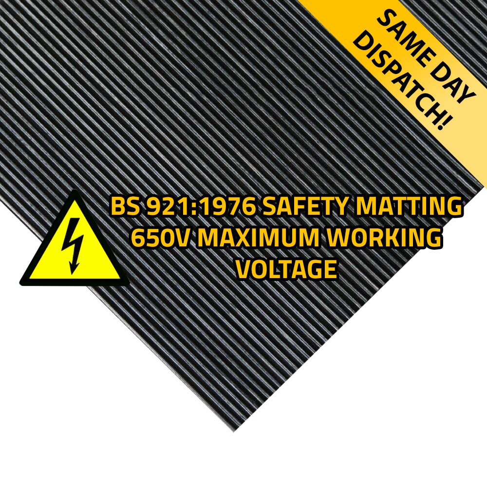 This matting is manufactured and tested in order to ensure it conforms to British Standard BS 921:1976. During the manufacturing process, the matting is stress-tested up to a maximum of 15,000 volts. This ensures it is able to withstand frequent and heavy use.