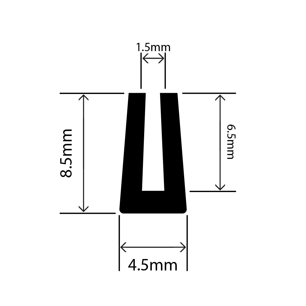 RC-I0922 - Neoprene Square U Channel - 4.5mm x 8.5mmRC-I0922 - Neoprene Square U Channel - 4.5mm x 8.5mm