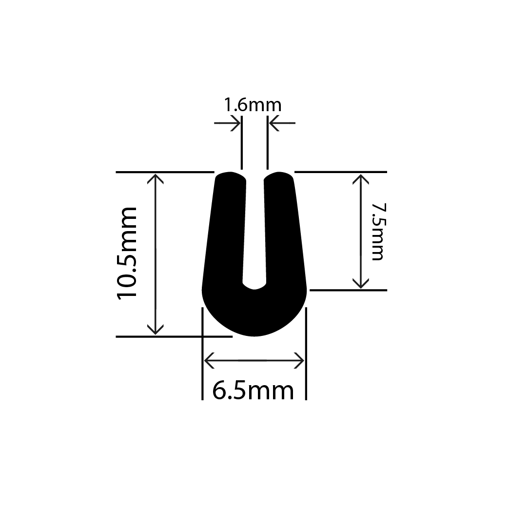 RC-I0429 - Neoprene U Channel - 6.5mm x 10.5mmRC-I0429 - Neoprene U Channel - 6.5mm x 10.5mm