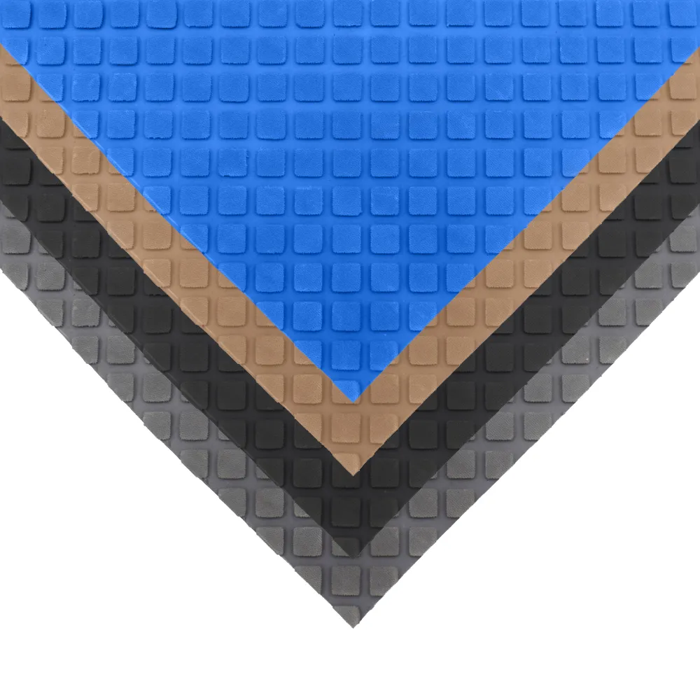 The top surface of this matting features a series of rhombus shapes, each containing a low profile anti-slip texture. This enables it to provide excellent levels of grip in both wet and dry environments. The flexibility of our matting enables the gripping rhombus shapes to compress slightly under foot. This compression helps our matting to contour to the shape of your foot while ensuring superior barefoot comfort. The flexible construction also allows you to install our matting over uneven surfaces or slopes. This is particularly useful for covering tiles with large gaps or chips and ramps going into the pool.