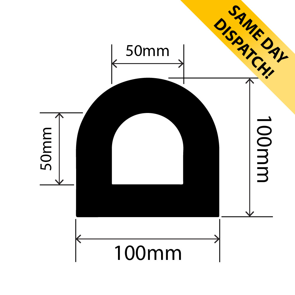 RC0801-100 - Rubber D Fender - 100mm x 100mmRC0801-100 - Rubber D Fender - 100mm x 100mm