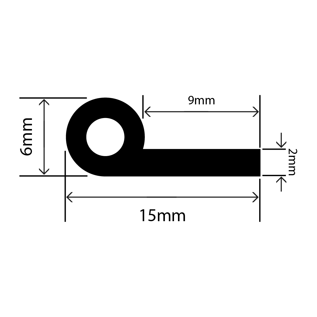 Rubber EPDM P Extrusion – 15mm x 6mm