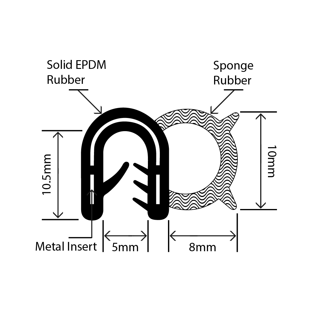 Our range of door seals offers the ideal solution to provide a watertight seal around any door or hatch. This product is a self grip door seal – 17mm x 10mm. The U clip is easily pressed over the edge of the door and is held in place without adhesive due to the natural gripping force of the product. The steel core ensures that the seal holds its shape while offering added protection. Our door seals can be used in a wide variety of interior and exterior applications.